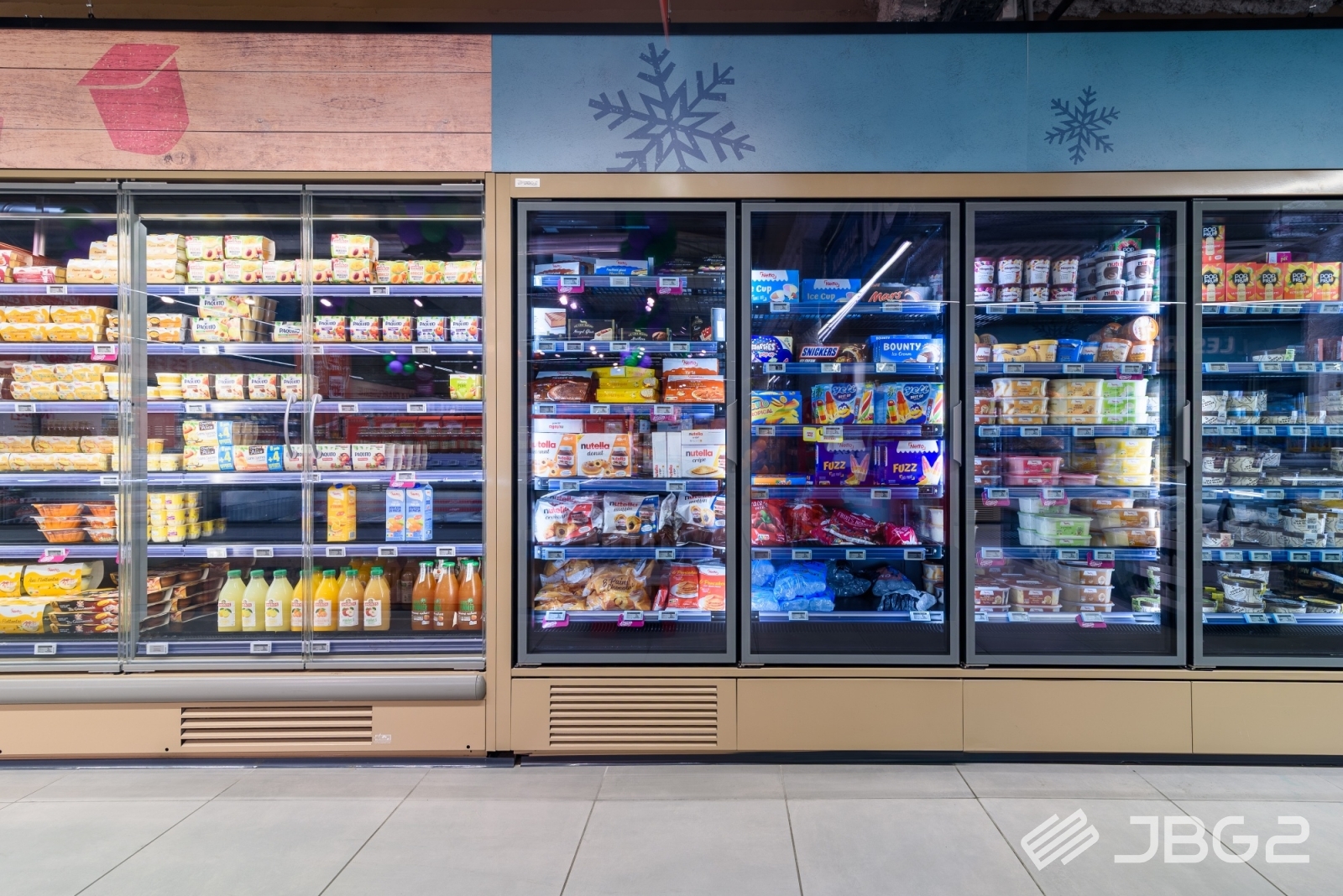 Geräte mit eigenen verbauten Aggregaten, die für kleinere Märkte vorgesehen sind. Diese Möbel benötigen keine externe Kühlanlage.