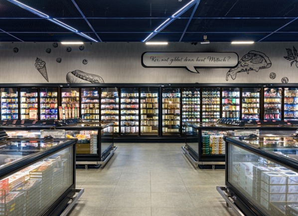 Geräte mit eigenen verbauten Aggregaten, die für kleinere Märkte vorgesehen sind. Diese Möbel benötigen keine externe Kühlanlage.